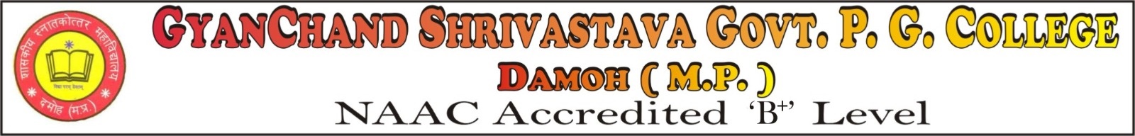 A warm welcome to everyone from the principal and staff of Government P.G College Damoh MP..This institution works under the department of higher education M.P and is affiliated to Maharaja Chhatrsal Bundelkhand University Chhatarpur MP, accredited ‘B’ by NAAC.In our college we prepare the students for a better understanding of the world around them by giving more stress on application level of the concepts and ideas related to the subject.